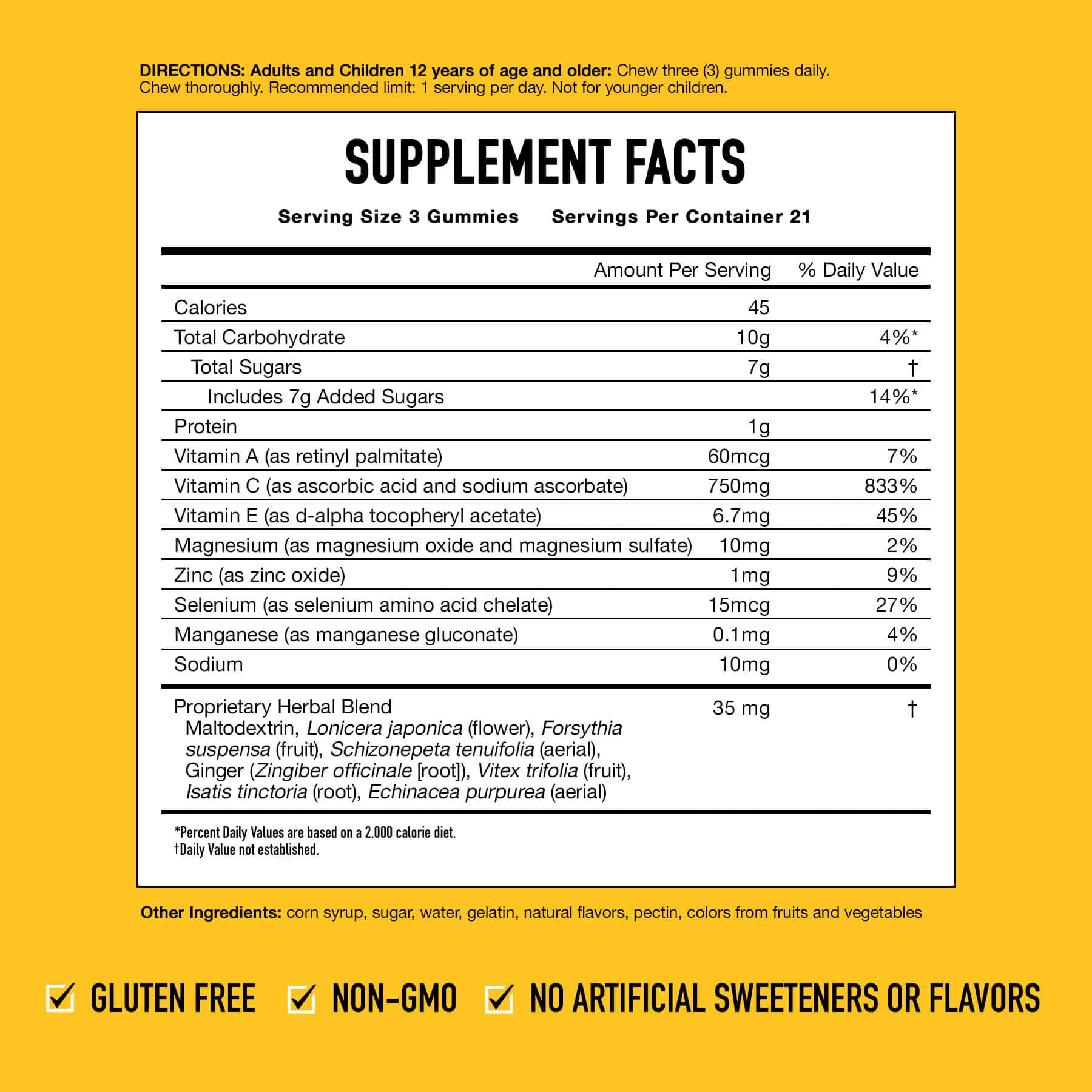 • THOUGHTFULLY CRAFTED: Each gummy contains a crafted blend of Vitamin C plus other vitamins. minerals. and herbs including Echinacea and Ginger