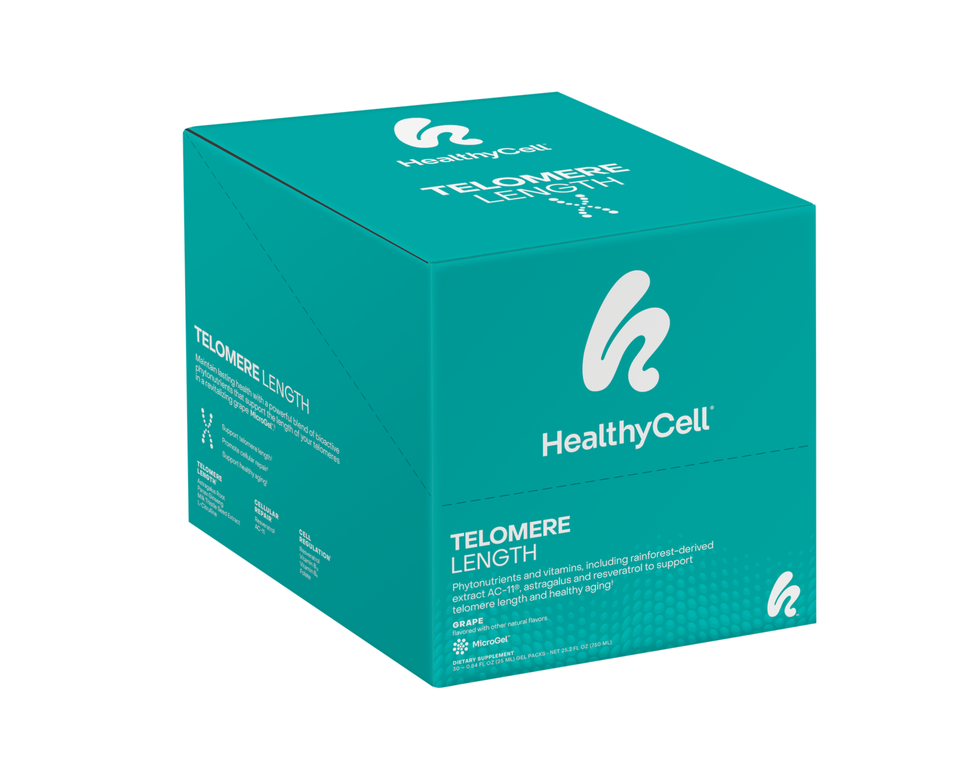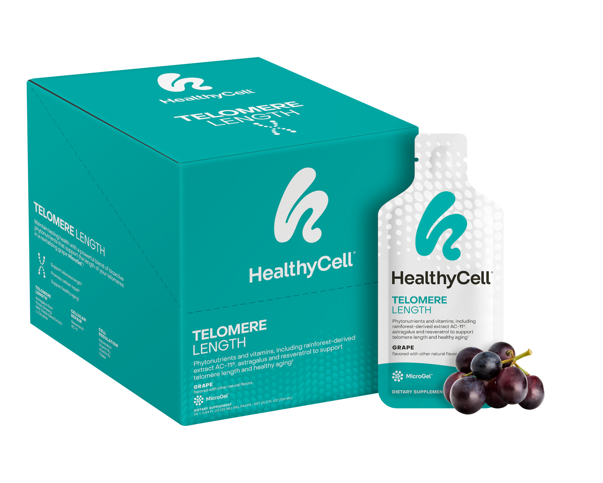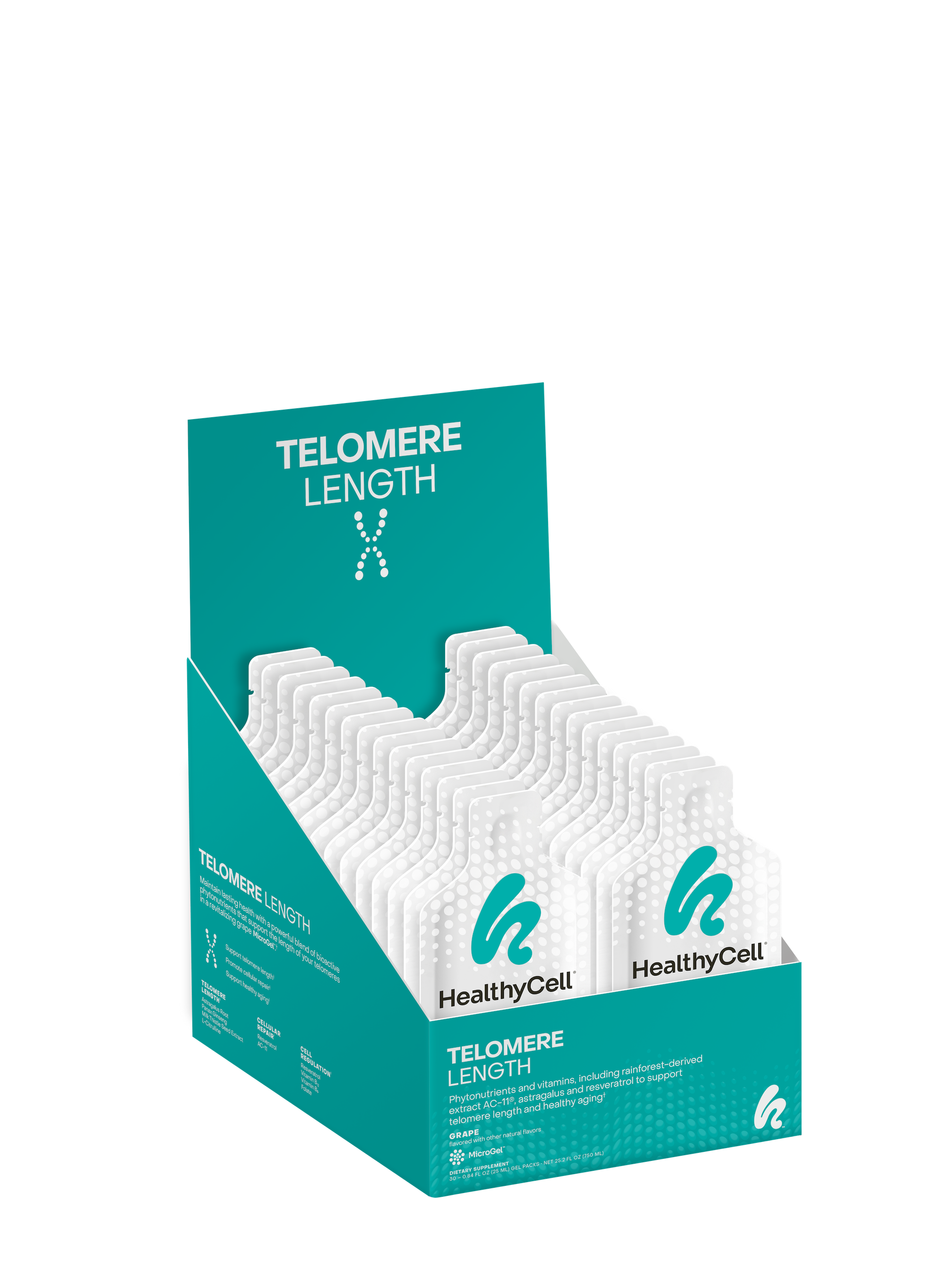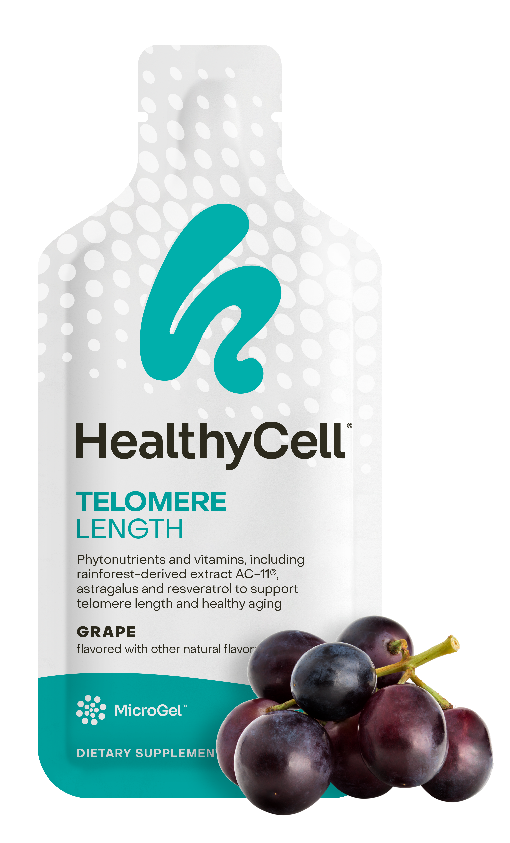 Lasting health is in your DNA. Maintain it with a powerfully protective blend of bioactive phytonutrients that support the length of your telomeres (and lifespan) in a revitalizing grape MicroGel™.